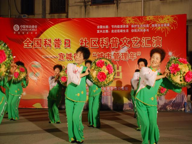 为深入贯彻实施《全民科学素质行动计划纲要》,丰富“全国科普日”活动内容,市科协及早计划,周密安排,请东虹社区编排集科普与娱乐为一体的文艺晚会,在城区巡回演出。文艺演出紧贴全国科普日主题“走近低碳生活,你我共同参与”,目的为了让市民更好的认识保护环境、倡导低碳生活的重要意义,自觉参与创建生态城市、绿色城市中来。